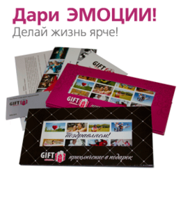 Если купить подарочную карту в магазине бытовой техники – вещь уже достаточно обычная, и часто используемая, то заказ такой карты именно на услуги является дальнейшим развитием самого подхода к дарению. Наш интернет магазин дает вам уникальную возможность – подарить близкому вам человеку целый день, который он сможет провести за любимым занятием. Полет на самолете, стендовая стрельба, тест-драйв автомобиля, посещение стриптиза и т.д.. Такой подарок позволяет человеку легко воспользоваться данной услугой, не тратя свое время на ее поиски. Вы можете заказать любой презент в Краснодаре у нас уже сейчас – и ваши родственники, друзья и любимые гарантированно получат интересное приключение к своему празднику, настоящий сюрприз, который запомнится намного лучше, чем обычные материальные подарки.