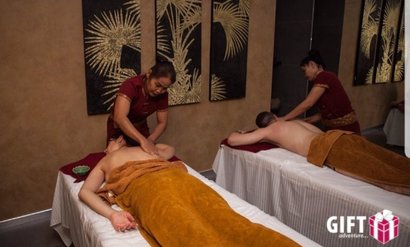 Вас ждет часовой массаж для двоих, вы будете находиться в одном помещении и с вами будет работать два мастера одновременно.
